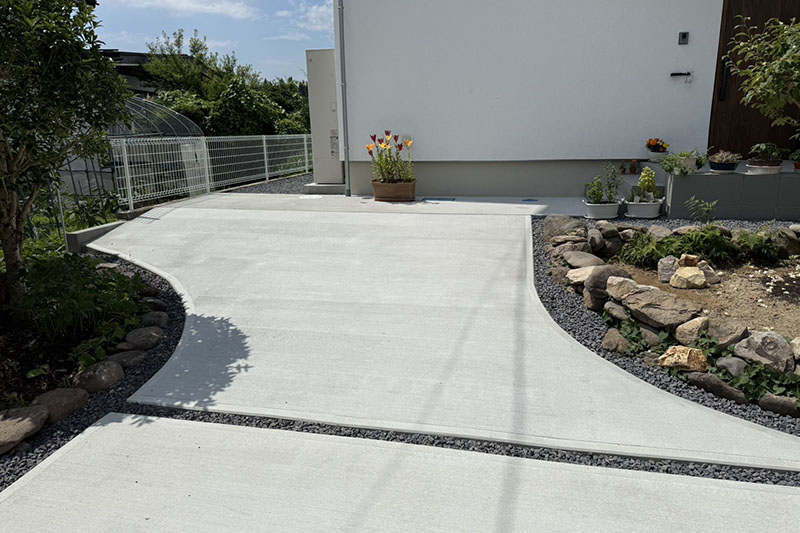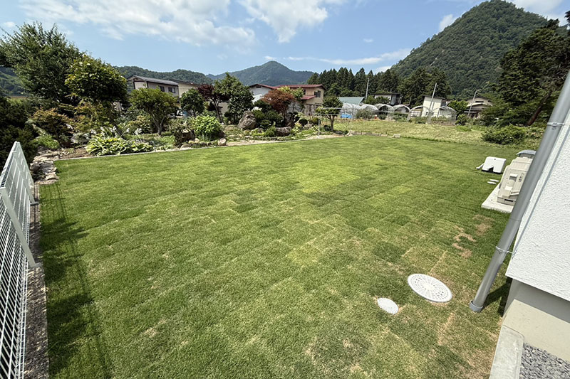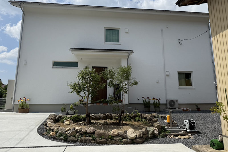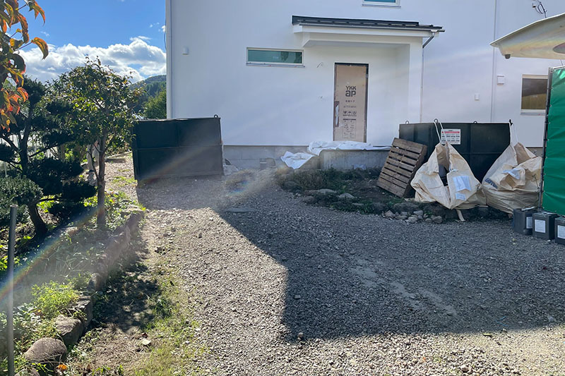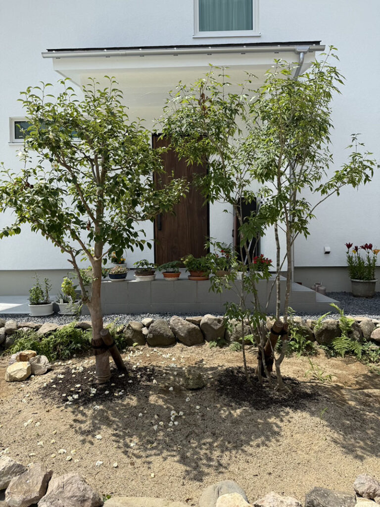 植栽:アオダモ・シャラの木、防草シート+5号砕石敷き均し